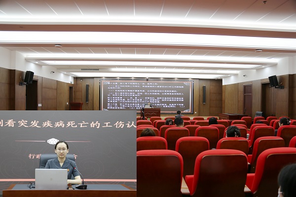 李若含以《从最高院案例看突发疾病死亡的工伤认定要点》为题,从工伤认定的具体情形展开,结合最高人民法院五则相关案例,对如何准确把握工伤认定过程中,容易产生歧义的工作时间及工作地点延伸情形,进行了详细的分析讲解。本次交流对开阔审理同类案件视野,储备业务知识,准确理解立法精神起到了一定作用。