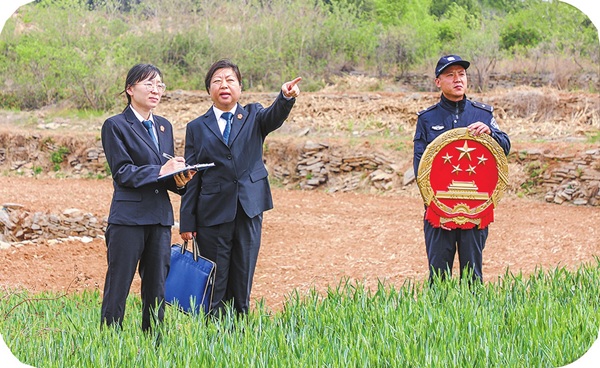 平阴法院孔村法庭对一起承包地纠纷开展现场勘验。