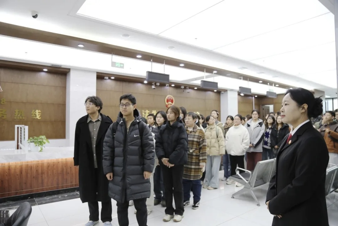 在讲解员的引领下,师生们依次参观了阳光大厅、诉讼服务中心、执行指挥中心、党建室及图书室等场所。同学们怀揣着对未来工作的期待和职业梦想,“沉浸式”体验法院工作,直观地了解了法庭的工作氛围以及浓厚的法治文化,对法院的工作有了更为全面的认知。